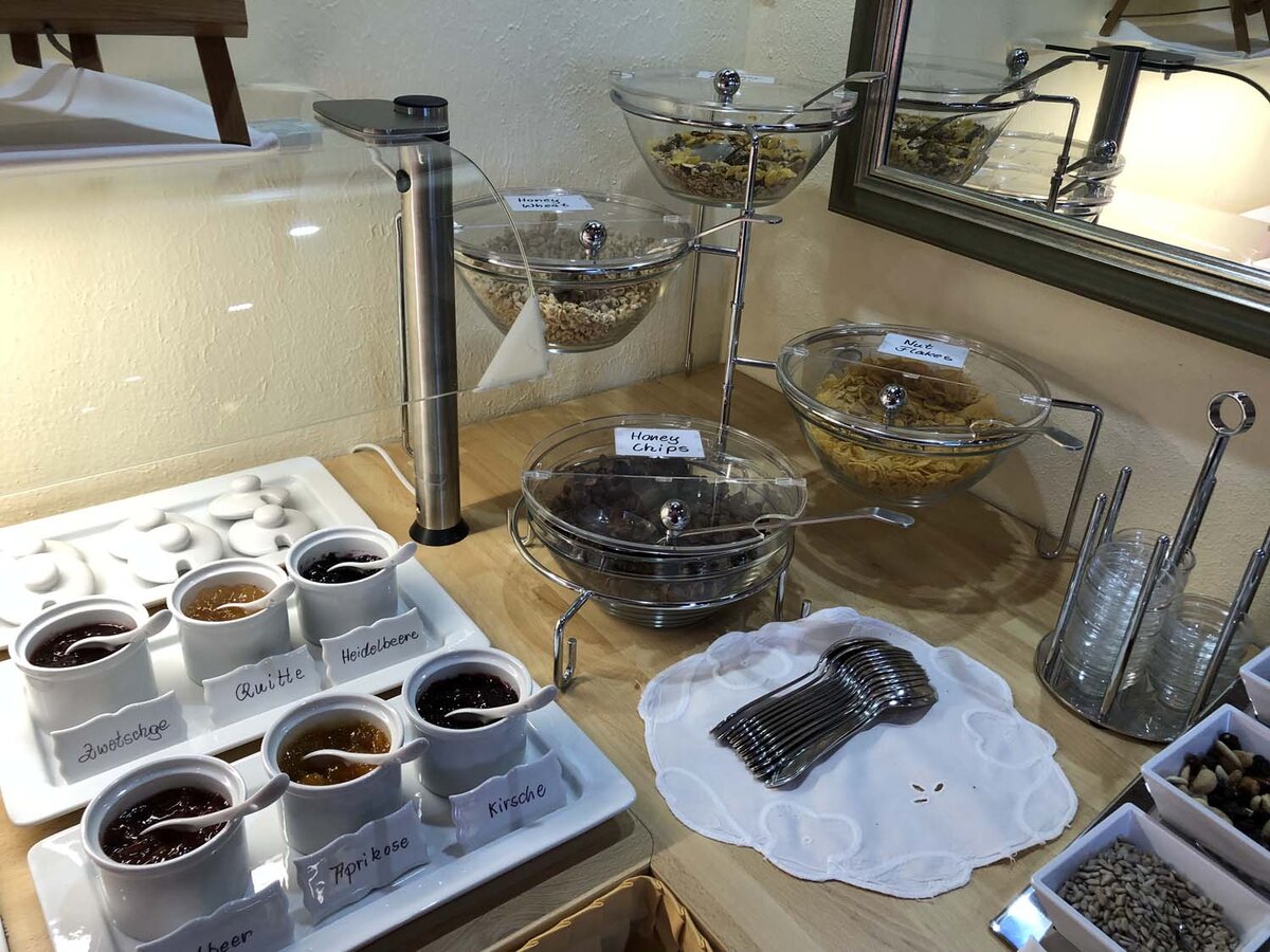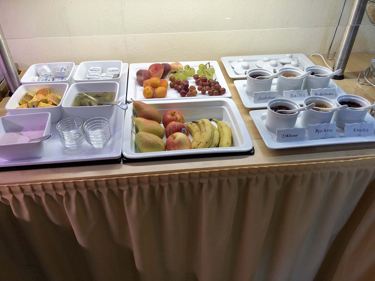 Het ontbijtbuffet biedt je een rijke keuze aan worst, kaas, ham, salami, yoghurt, muesli, jam, fruit, groenten en eiergerechten (scharrel). Natuurlijk worden de eiergerechten en het koffieassortiment vers voor je bereid.